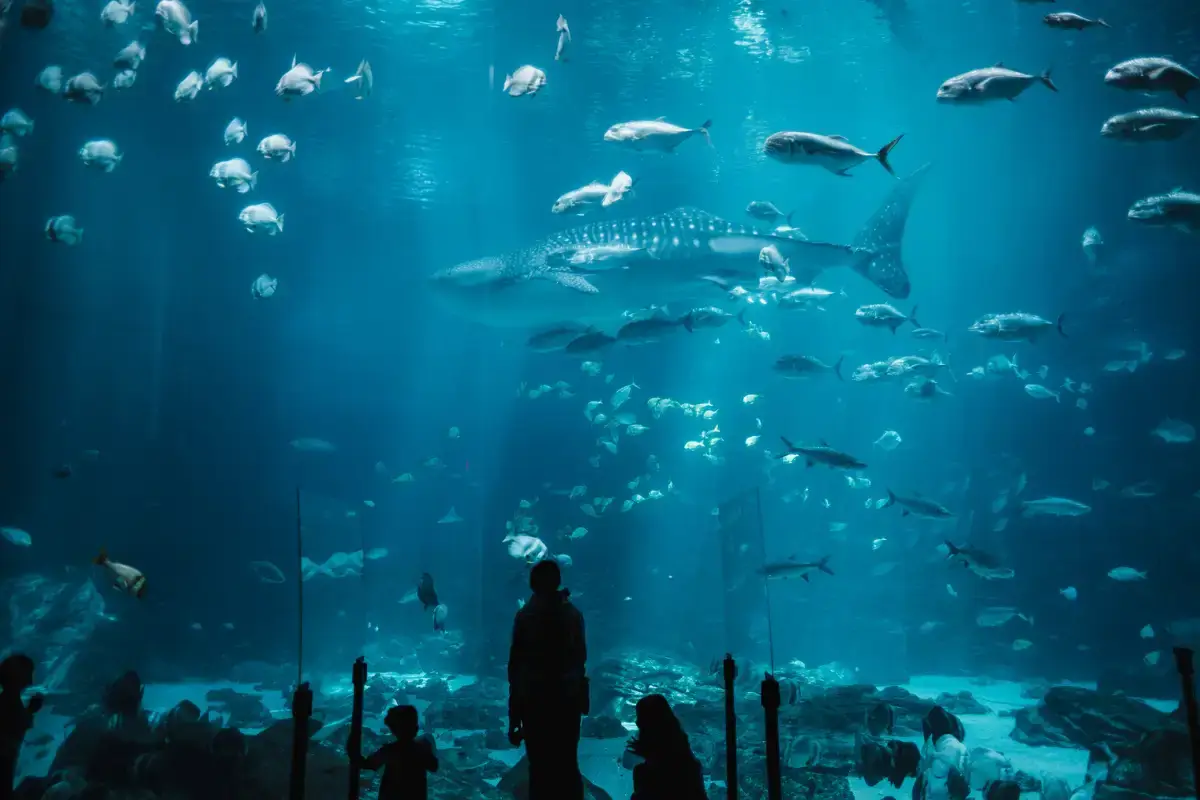 Acuario con una gran pecera, espectáculos con animales y la opción de nadar con leones marinos y tiburones.